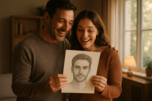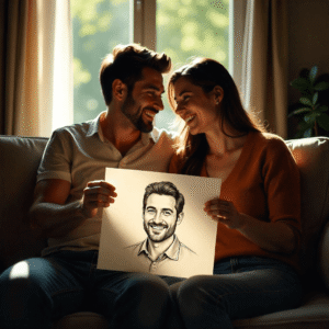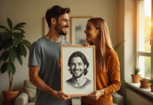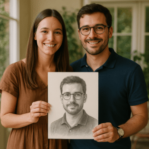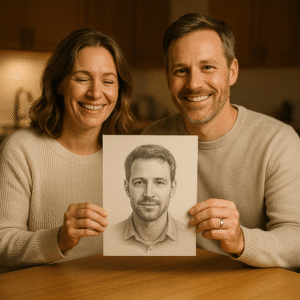 Ik ben al lang single en begon het vertrouwen in dating apps te verliezen. Alles voelde repetitief en onpersoonlijk. Dit portret bestellen voelde als een kleine, geheime daad van zelfzorg. Toen ik het opende, glimlachte ik letterlijk voor het eerst in weken. De man in de tekening voelde vertrouwd, zoals iemand die elk moment mijn leven binnen zou kunnen wandelen. Ik begon bijna meteen nieuwe mensen om me heen op te merken.